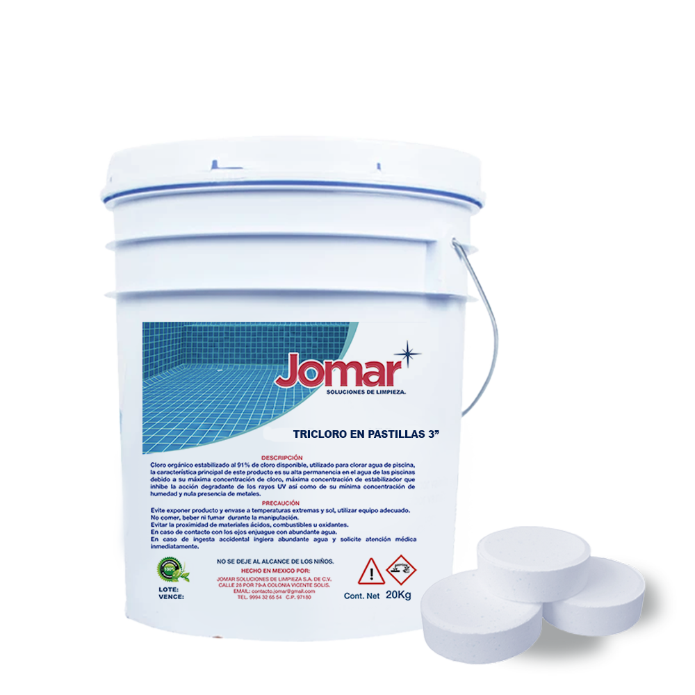 cloro orgánico estabilizado al 91% de cloro disponible, utilizado para clorar agua de piscina, la característica principal de este producto es su alta permanencia en el agua de las picinas debido a su máxima concentración de cloro, maxima concentración de estabilizador que inhibe la acción degradante de los rayos UV asi como de su minima concentración de humedad y nula presencia de metales.