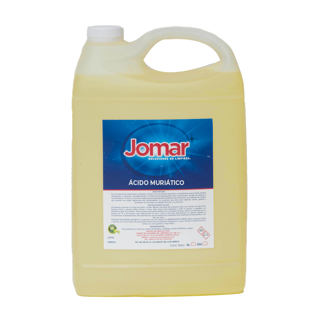 Es un producto para uso doméstico e industrial. Es un agente limpiador y desinfectante con alto poder quita sarro y óxido ideal para devolver el brillo a pisos y azulejos. Puede utilizarse como agente limpiador de picinas y controlar el potencial de Hidrógeno , (pH).
