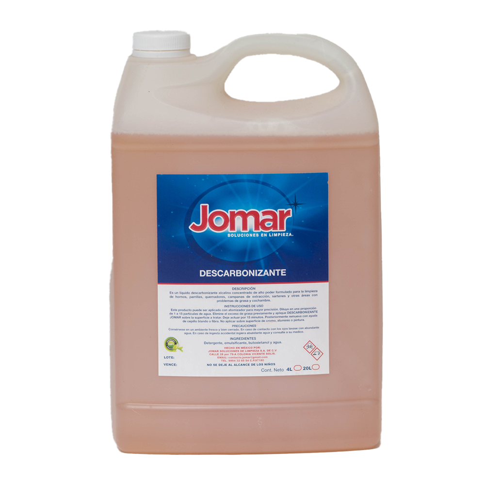 Es un líquido descarbonizante alcalino concentrado de alto poder formulado para la limpieza de hornos, parrillas, quemadores, campanas de extracción , sartenes y otras áreas con problemas de grasa y conchambre.