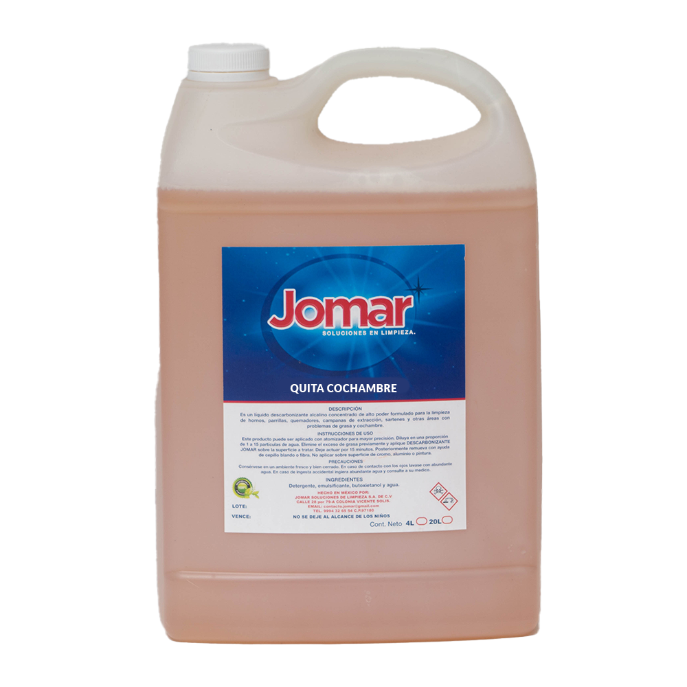 Es un líquido descarbonizante alcalino concentrado de alto poder formulado para la limpieza de hornos, parrillas, quemadores, campanas de extracción , sartenes y otras áreas con problemas de grasa y conchambre.